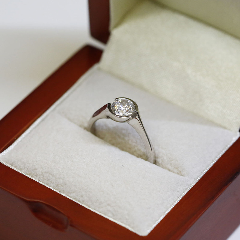You can choose from a variety of gemstones for your tension setting engagement ring, including diamonds, sapphires, emeralds, and rubies. The clean and contemporary design of the tension setting works beautifully with a wide range of gemstones, allowing you to create a ring that suits your style.